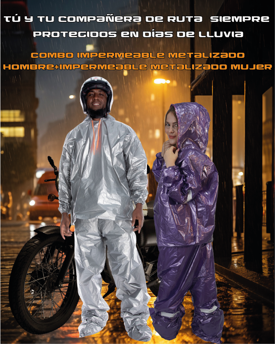 Combo pijama para moto + impermeable hombre + impermeable mujer